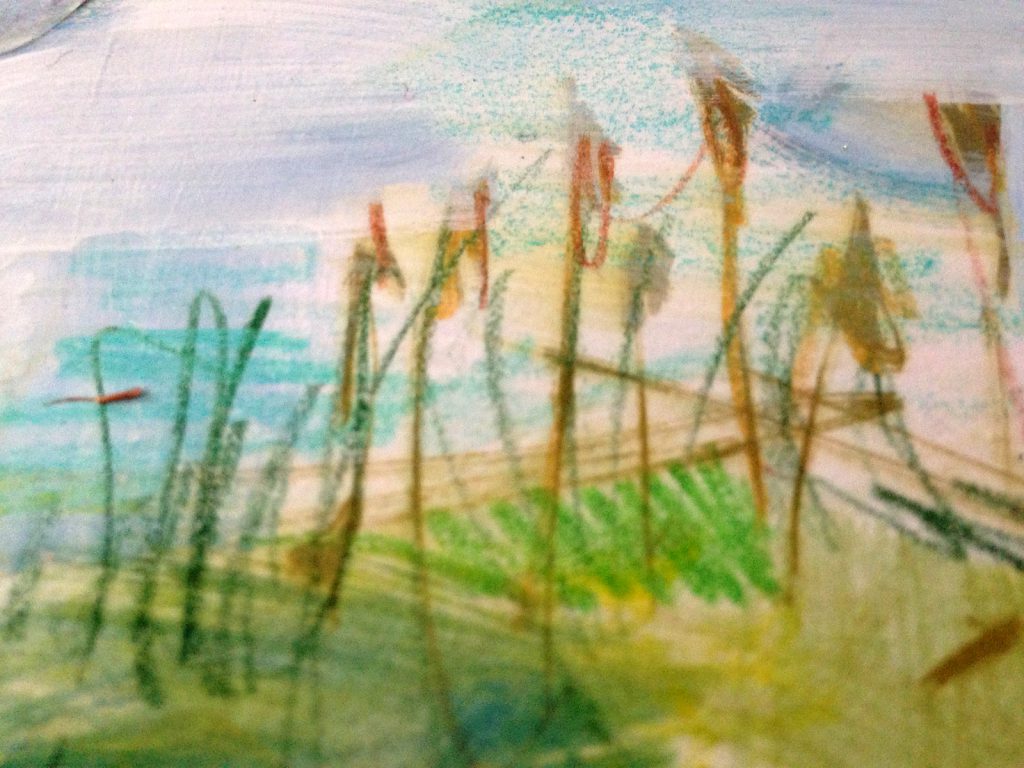 I love the green tufts of grass that crown the tops of the sand mounds on Hatteras Island. They are a welcome change of color and look like little hands waving hello as I walk by.