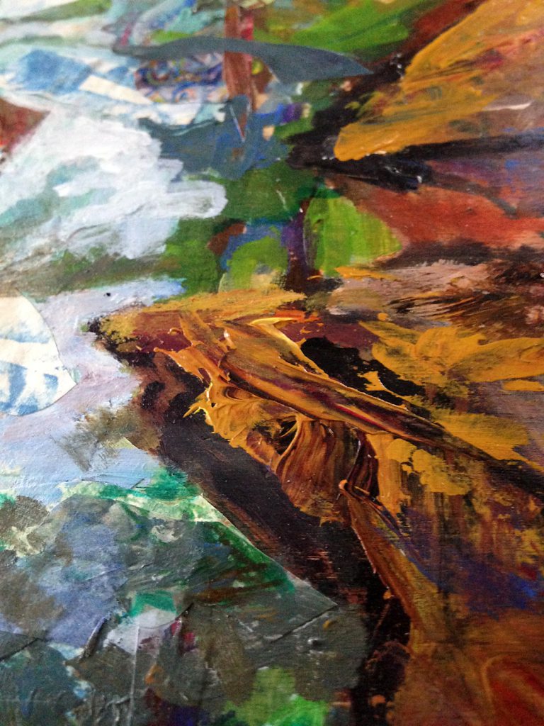 I have painted in many different locations, but this particular collage started in a unique place. The piece was titled …