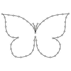 • Create a Line – Sometimes you don’t need a fill at all. You can simply “trace” the border created by the line of nails. The snowflake template below is the perfect candidate for a line-only string art. But lines can also be added for detail work and to emphasize the borders of fills you’ve created. For example the antennae of the butterly below requires line work. Or you could choose to outline the border of a flower template after it has been filled. This creates a sharp edge for your piece. Just remember to do your line work as the final step so that it will be on top of any fills.